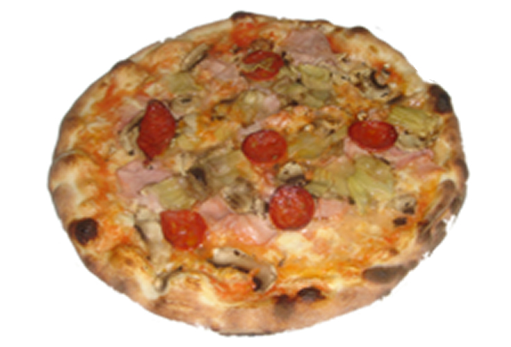 Pomodoro,Mozzarella,Prosciutto Cotto,Funghi,Carciofi,Salsiccia Piccante.