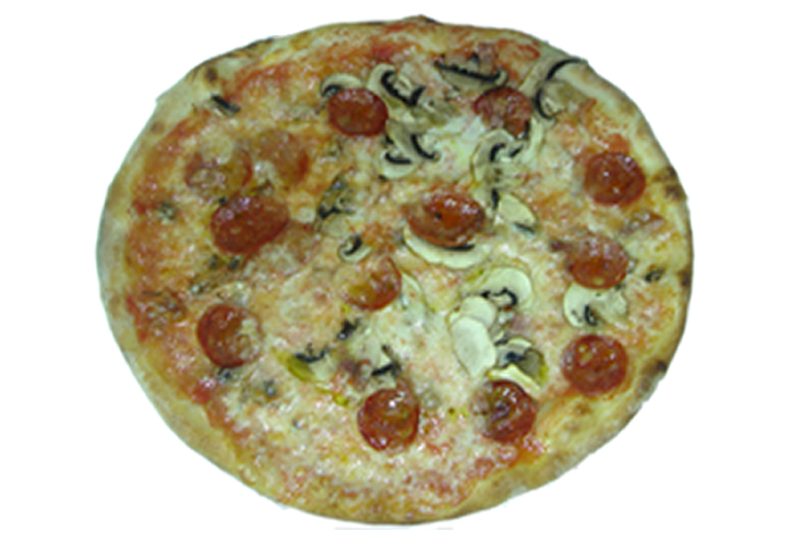 Pomodoro,Mozzarella,Funghi,Pancetta,Salsiccia Piccante